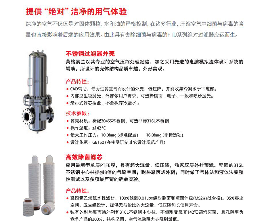 兩級壓縮空壓機廠家純凈的空氣不僅僅是對固體顆粒、水和油的嚴(yán)格控制,在諸多行業(yè),壓縮空氣中細菌與病毒的含量也直接影響著后端的應(yīng)用效果。由此具有去除細菌與病毒的F-U系列過濾器應(yīng)運而生。